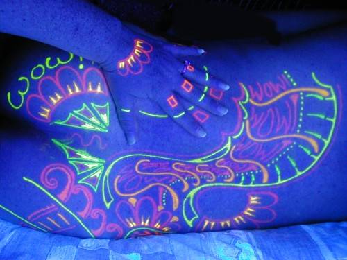I am an artist and psychedelica is my medium. I do psychedelic black light body art, like this: